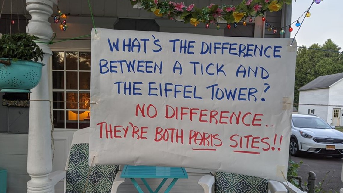 For the past 100 days, Woody Latour has been lifting spirits by hanging his "daily dad jokes" on the porch at his New York home — as well across the country through his Facebook page.