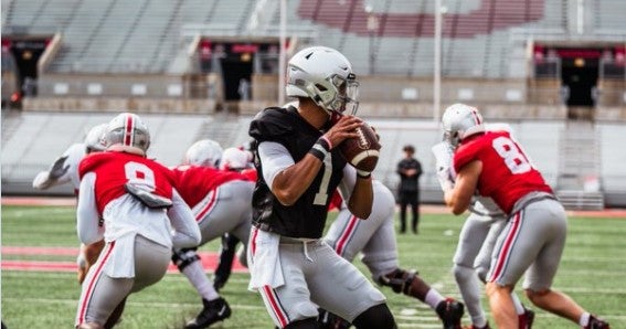 Ohio State is practicing inside Ohio Stadium on Saturday while other Power 5 conferences continue their regular season, the first step in getting back to competitive football for a team most expect to compete for a championship this fall.