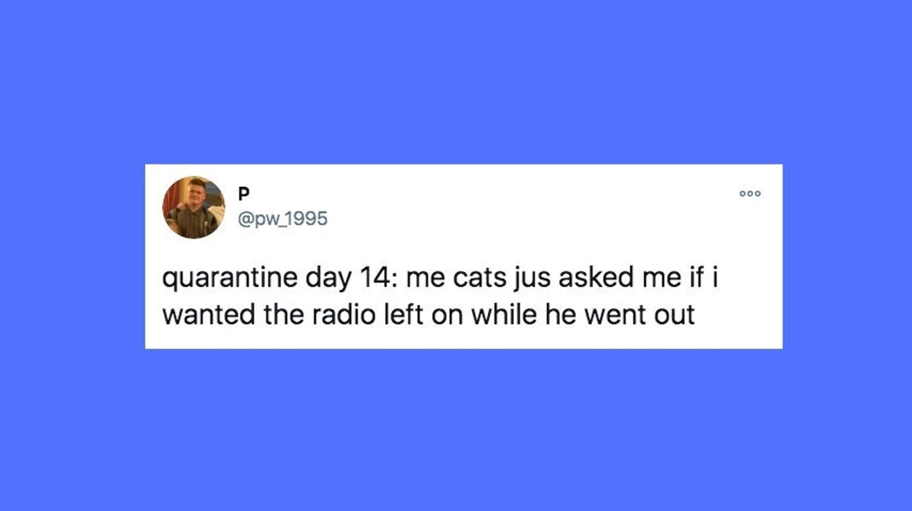 quarantine day 14: me cats jus asked me if i wanted the radio left on while he went out