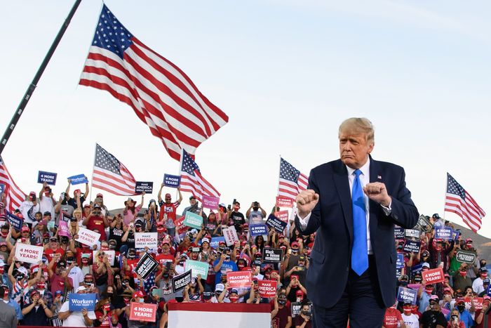 Donald Trump performs his signature dance for supporters at an October 18 campaign rally in Carson City, Nevada, less than three weeks before the 2020 election. Trump’s moves did not help him win reelection, but they did become a minor sensation on the popular social-media platform the president sought to ban. Photo: Mandel Ngan/AFP via Getty Images