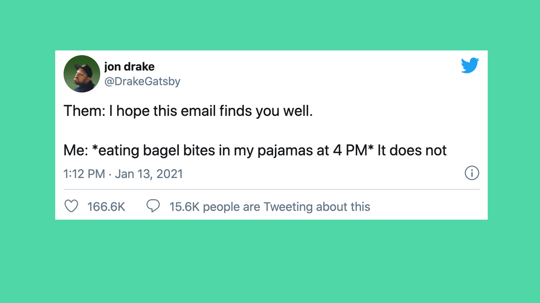 Here are 13 relatable tweets that sum up how many of us feel when we hear the ping of a new email that hopes to find us well.